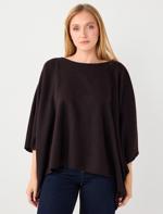 • Women Brown Boat Neck Bat Sleeve Soft Textured Blouse