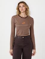 • Women Brown Crew-Neck Line Patterned Knitted Blouse with Embroidery Detail