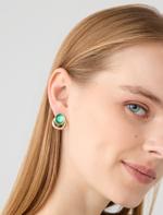 Green Enamel Detailed Shiny Stone Earrings
