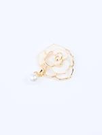 • Women Beige Flower Figured Brooch with Pearls