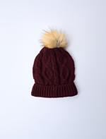 Claret Red Hair Braid Patterned Pompom Detailed Beret