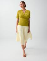 • Women Yellow High Waist Relaxed Fit Pleated Mesh Midi Skirt