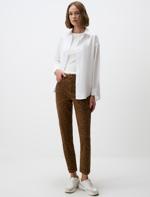 Drawing attention with its bold leopard print, these high waist slim-fit pants add an energetic touch to your style. Pair them with a white shirt or a simple top to highlight the pattern and add an assertive touch to your everyday look.