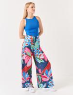 • Women Mixed High Waist Wide Leg Floral Satin Pants
