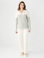• Women Ecru High Waist Wide Leg Knitted Modal Pants