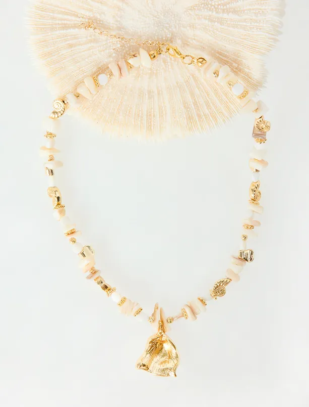 White Metal Figured Natural Stone Detailed Necklace