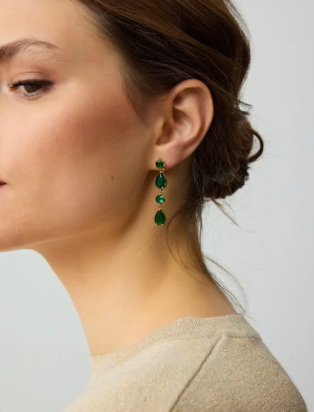 • Women Green Oval Stone Figured Rocking Earrings