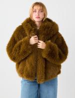 • Women Brown Plush Fur with Hood Detail
