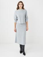 Grey Regular Waist Relaxed Fit Hair Braid Patterned Knitted Skirt