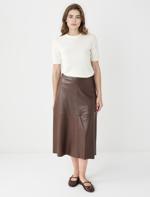 • Women Brown Relaxed Fit Regular Waist Leather Look Midi Skirt