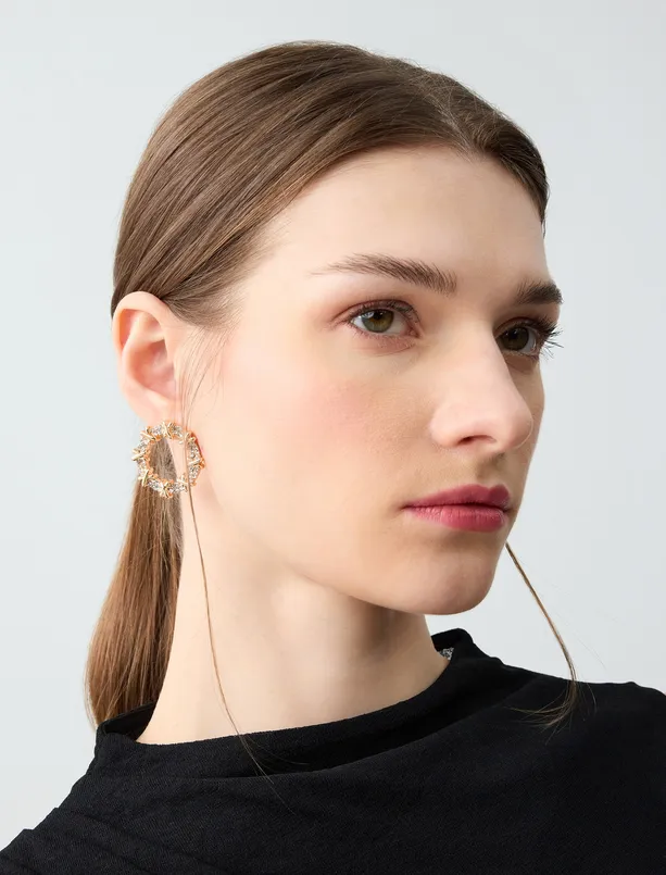 • Women Yellow Round Earrings with Shiny Stone Detail