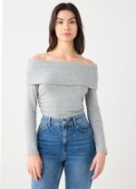 • Women Anthracite Slim Fit Boat Neck Long Sleeve Modal Knitted Blouse