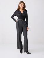 This knitted blouse, which fits the body with its slim fit, creates a feminine silhouette with its long sleeves and cross neckline detail. Thanks to its stretchy structure, it offers a comfortable wear and adds an elegant movement to modern combinations.