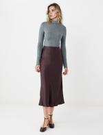 • Women Brown Slim Fit Normal Waist Long Satin Skirt