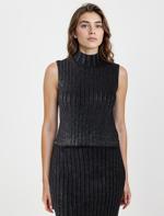 • Women Black Stand Collar Sleeveless Cotton Knitted Sweater Blouse