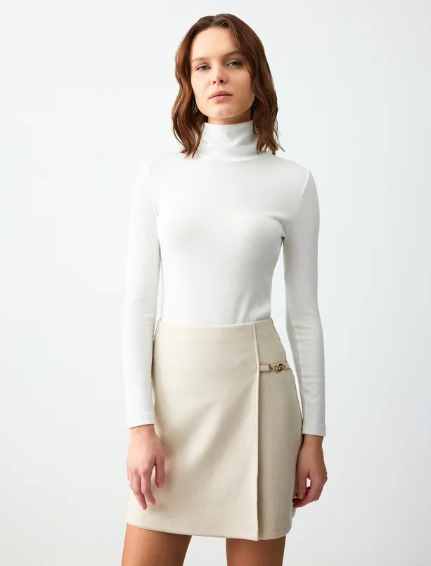 Mink Straight Cut Chain Detailed Knitted Mini Skirt