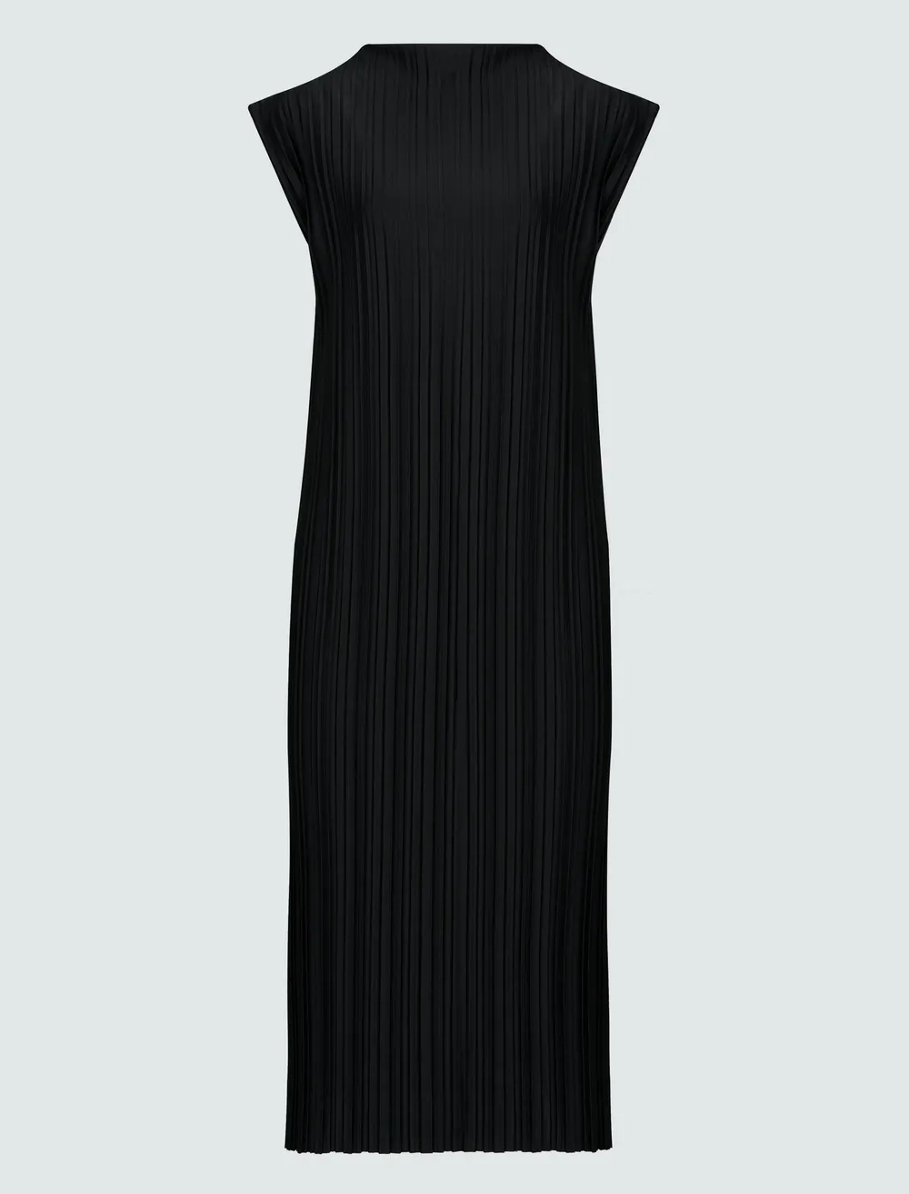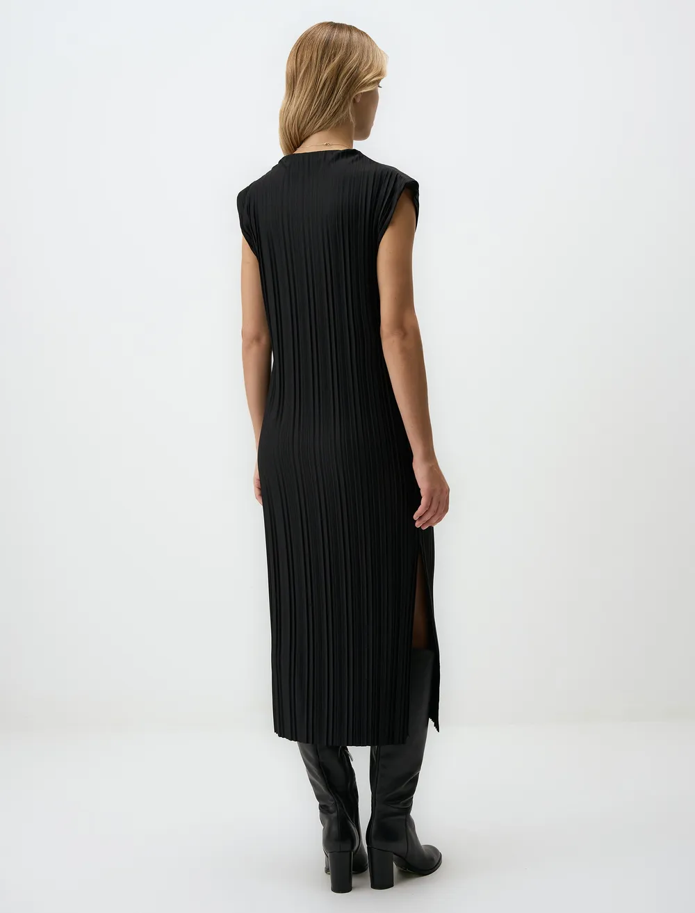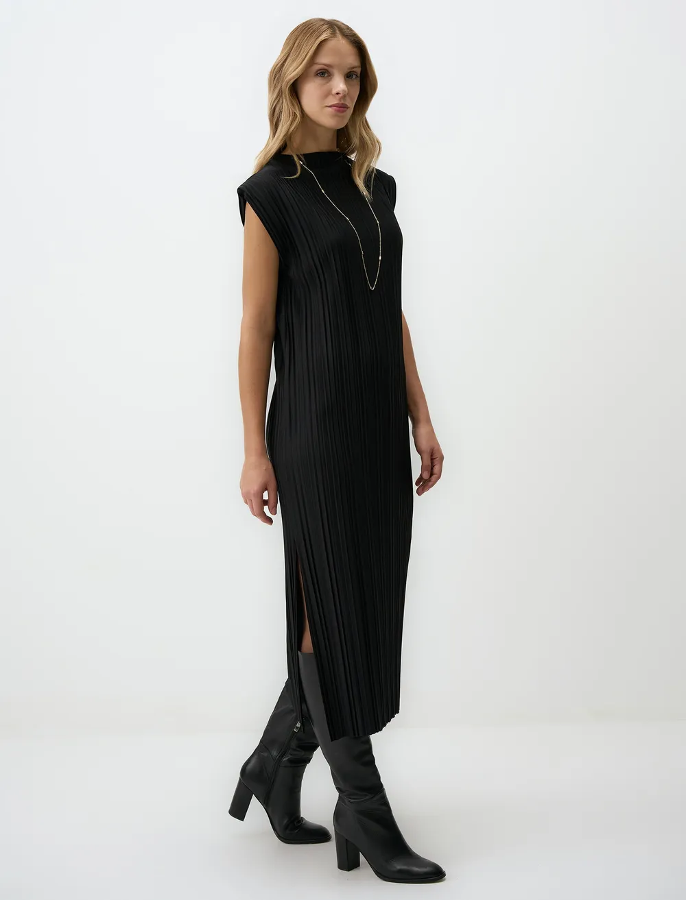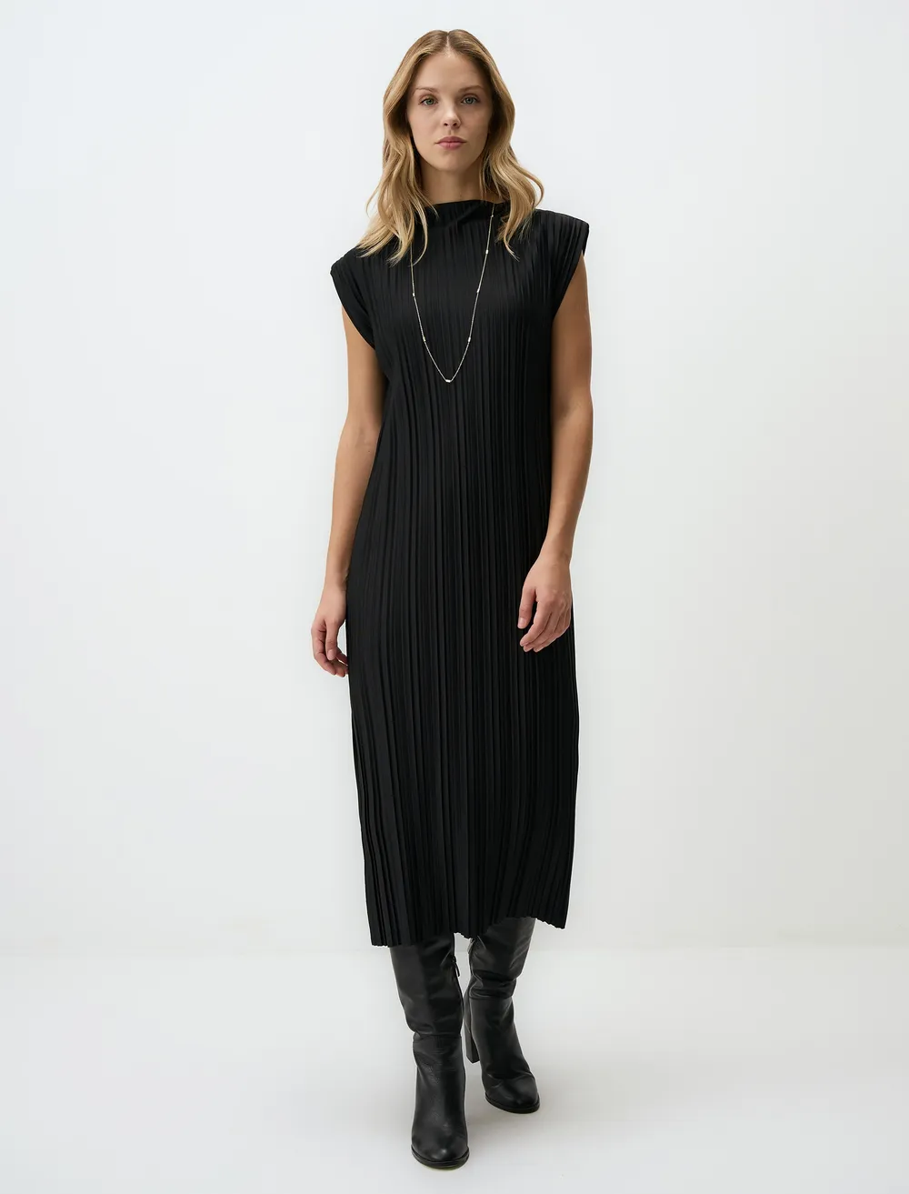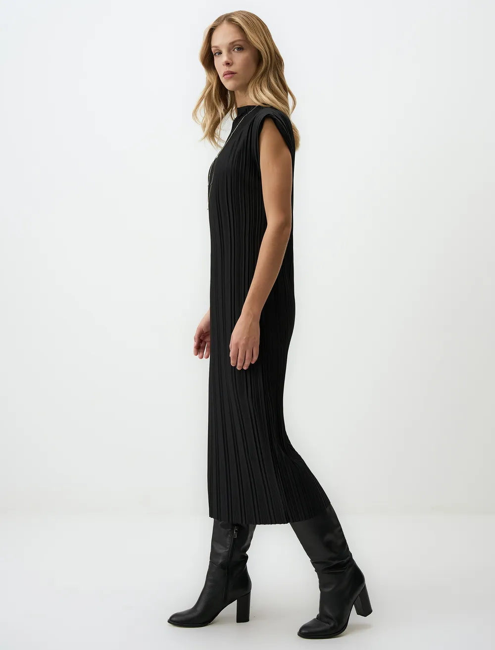 Zero Neck Relaxed Fit Pleated Knitted Midi Dress