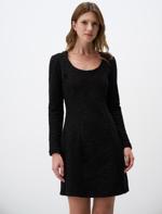 • Women Black U Neck Long Sleeve Knitted Mini Dress