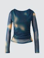 • Bayan Haki  Kayık Yaka Uzun Kollu Desenli Mesh Örme Bluz