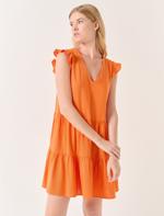 • Bayan Turuncu  Kolsuz V Yaka Mini Keten Elbise