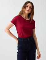 • Bayan Bordo %100 Pamuk Bisiklet Yaka Omuzu Detaylı Örme Bluz