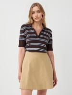 • Bayan Kahverengi %100 Pamuk Kısa Kollu Gömlek Yaka Örme Tişört