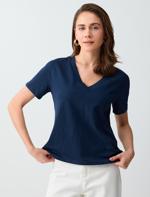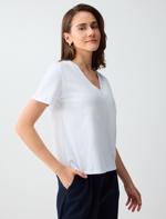 • Bayan Beyaz %100 Pamuk V Yaka Kısa Kollu Basic Örme Tişört