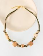 Bej Ahşap Detaylı İpli Kolye