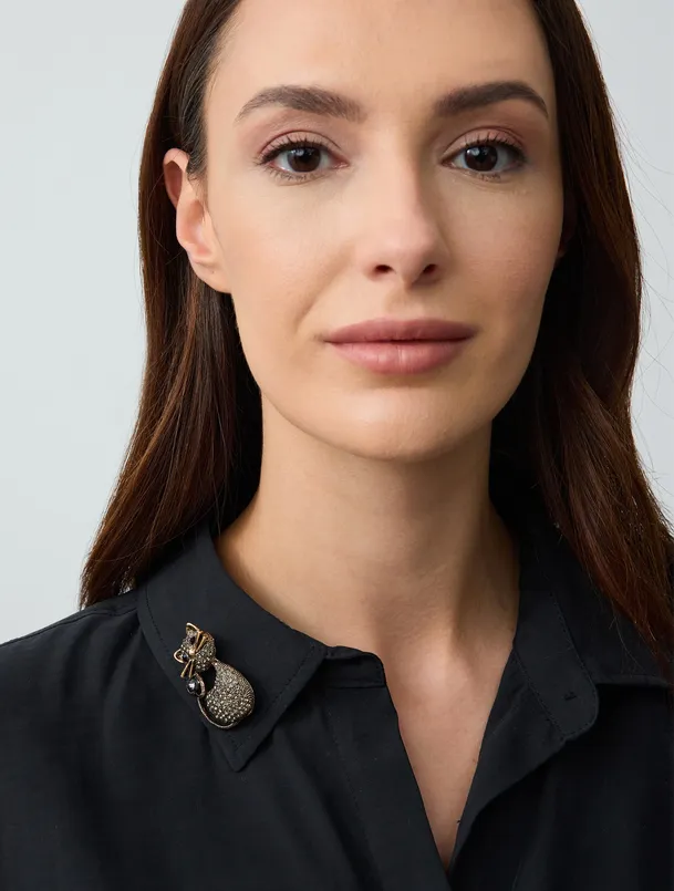 Taş Detaylı Kedi Figürlü Broş