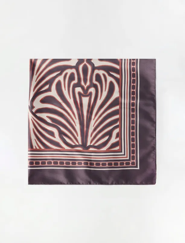 Kahverengi Asimetrik Desenli Dokuma Eşarp