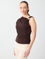 Siyah Asimetrik Yaka Düşük Omuz Dar Kesim Örme Bluz
