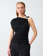 • Bayan Siyah Asimetrik Yaka Düşük Omuz Dar Kesim Örme Bluz
