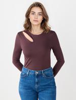• Bayan Kahverengi Asimetrik Yaka Uzun Kollu Dar Kesim Örme Bluz