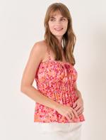 Açık Pembe Askılı Düz Yaka Çiçekli Bluz