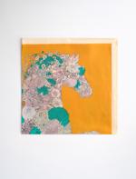 • Bayan Turuncu At Figürlü Çiçek Detaylı Eşarp