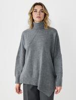 Gri Balıkçı Yaka Düşük Omuz Triko Kazak
