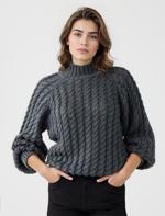 • Bayan Antrasit Balıkçı Yaka Saç Örgü Desenli Triko Kazak