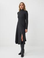 Antrasit Melanj Balıkçı Yaka Yumuşak Dokulu Örme Midi Elbise