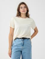 Ekru Bisiklet Yaka Kısa Kollu Örme Modal Tişört