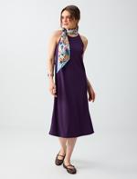 • Bayan Mor Bisiklet Yaka Kolsuz Bol Kesim Basic Örme Elbise