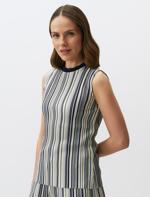 Düz Kesim, Kolsuz, Bisiklet Yaka, Çizgi Desenli, Piliseli, Örme, 2024 Yaz, Jimmy Key Bisiklet Yaka Kolsuz Desenli Piliseli Bluz,