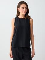 • Bayan Antrasit Bisiklet Yaka Kolsuz Düz Kesim Dokuma Bluz
