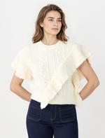 • Bayan Ekru Bisiklet Yaka Saç Örgü Desenli Triko Süveter
