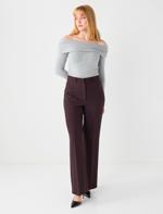 • Bayan Kahverengi Bol Kesim Bol Paça Normal Bel Dokuma Pantolon