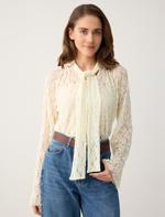 • Bayan Beyaz Bol Kesim Boyundan Bağlı Uzun Kollu Örme Bluz