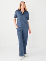 • Bayan Lacivert Bol Paça Normal Bel Geometrik Desenli Örme Pantolon