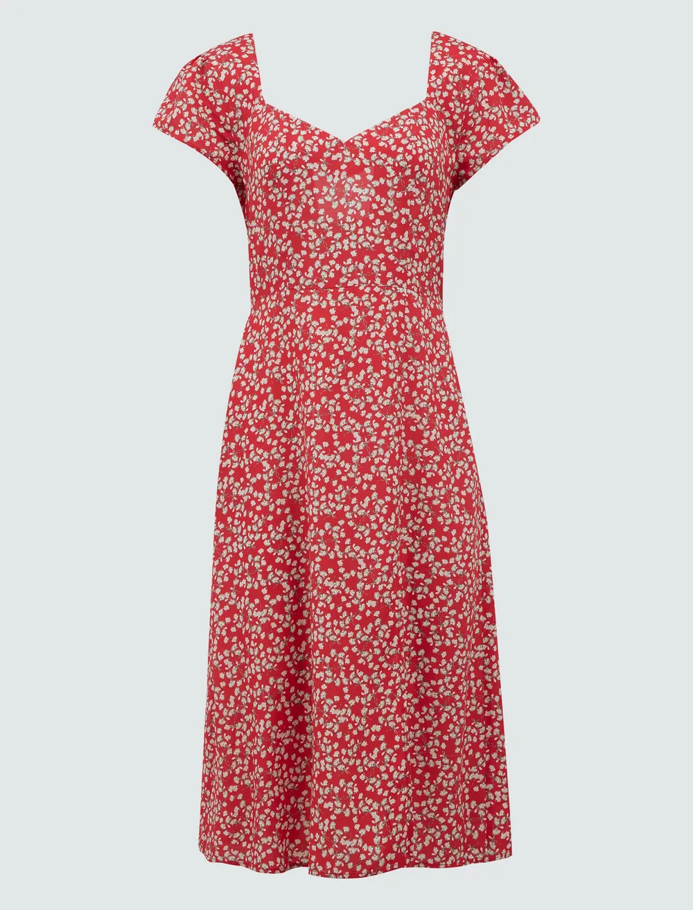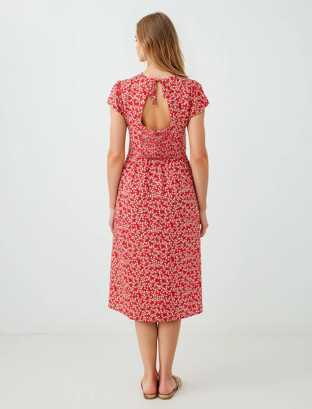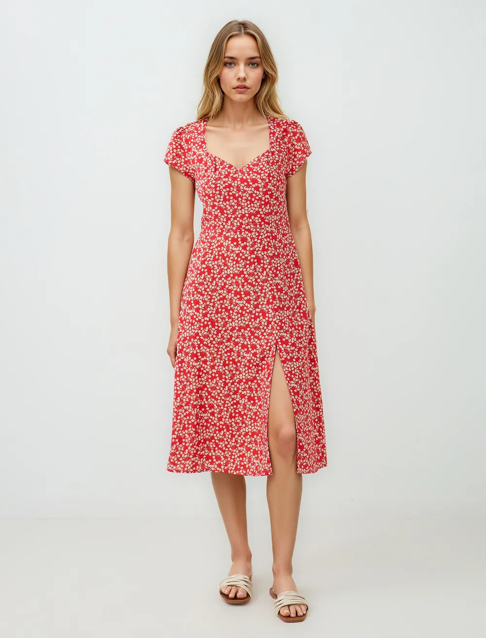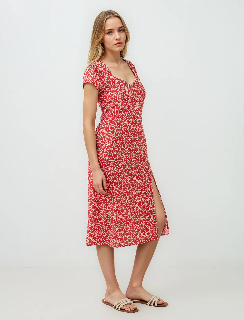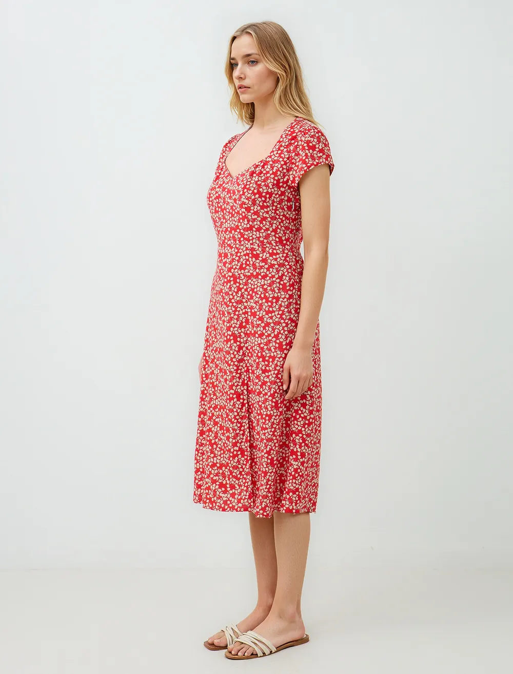 Boyundan Bağlı Kısa Kollu Desenli Midi Elbise
