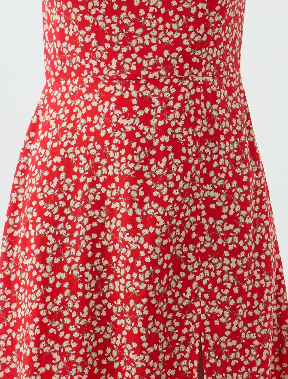 Normal Bel Çiçek Desenli Dokuma Midi Etek