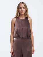 • Bayan Kahverengi Boyundan Bağlı Kolsuz Dokuma Bluz