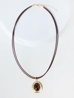 Kahverengi Büyük Taş Detaylı İpli Kolye